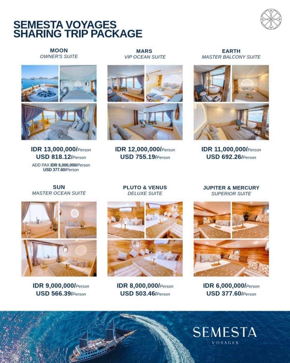 NOTE : Each boat has a different program and itinerary. Please choose the boat you like and check the details on each one.